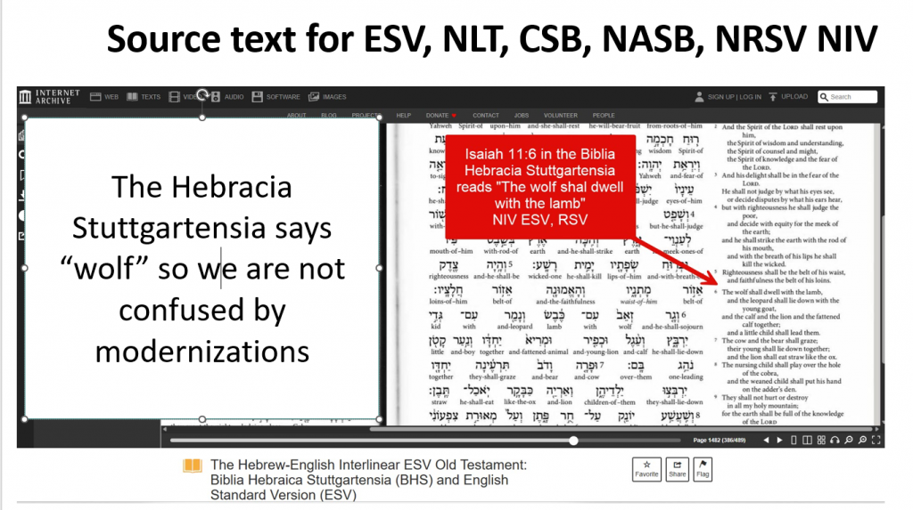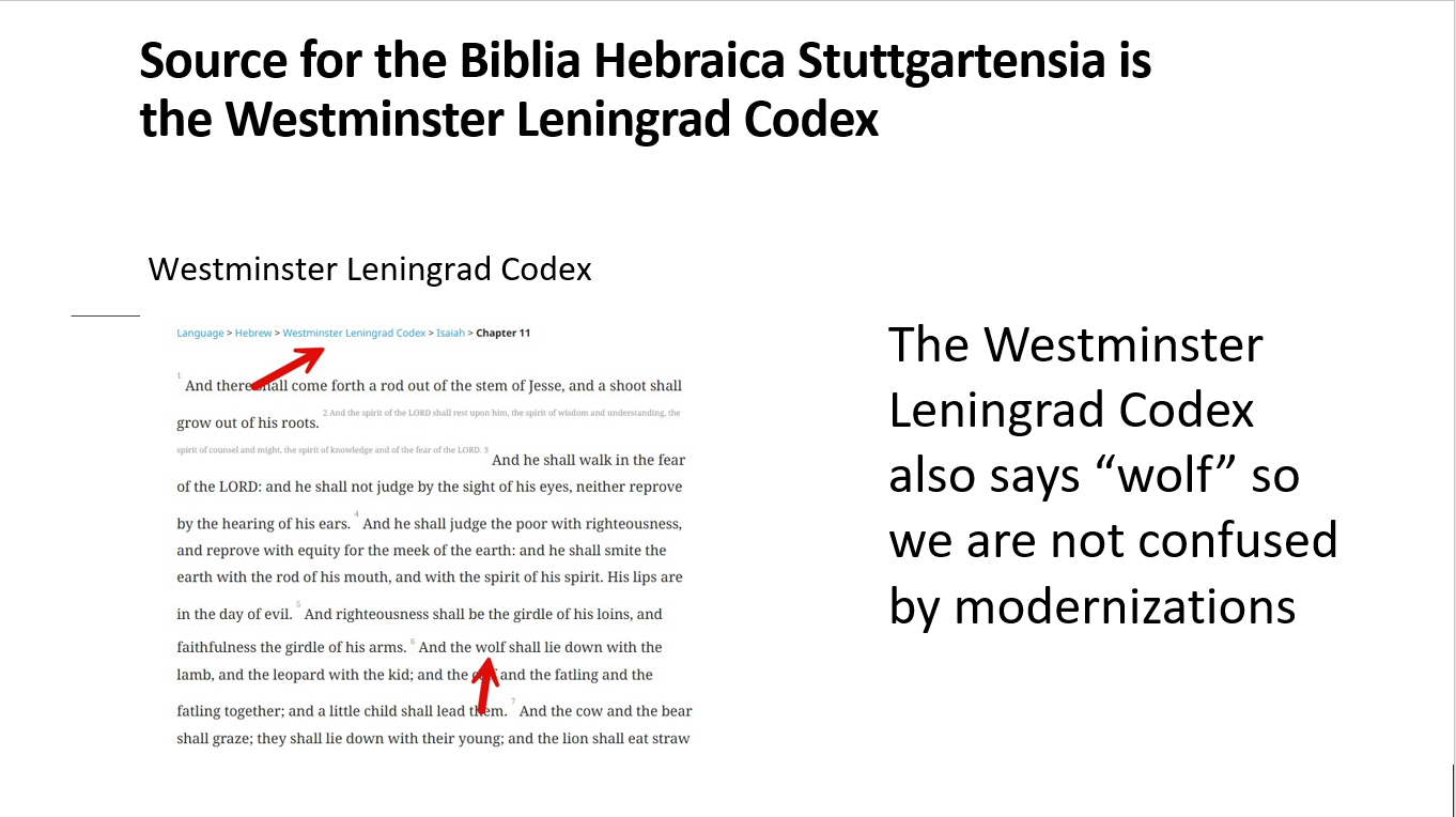 It's not just the KJV source texts that says "wolf," it's all versions. So let's look at some of the originating texts for some modern versions and see if they also say "the wolf."